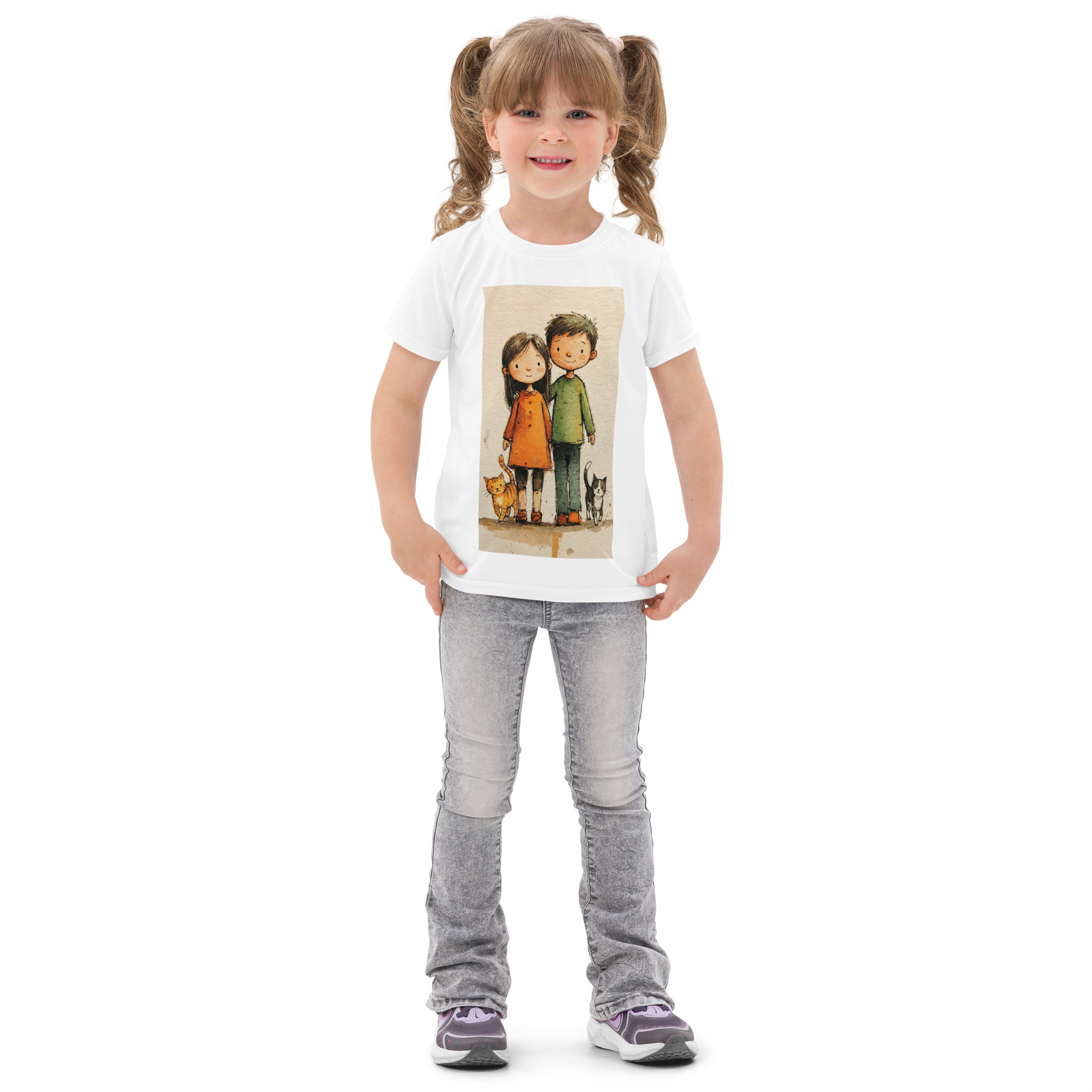 This soft cotton tee keeps kids comfortable from morning to bedtime. The light stretch keeps up with every movement and helps retain the t-shirt’s shape wash after wash, making it a dependable everyday staple.